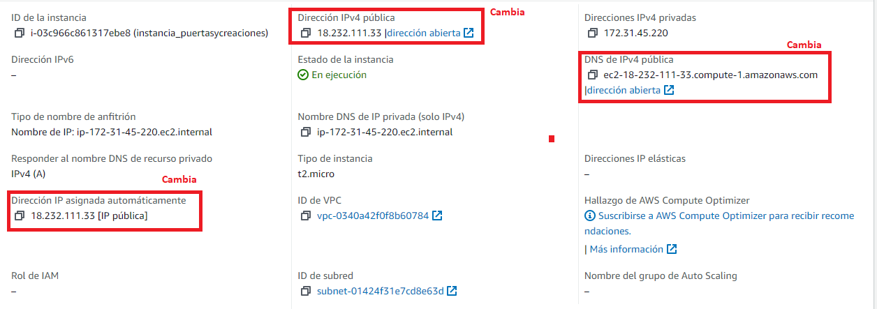 - La instancia conserva las direcciones IPv4 privadas asignadas.