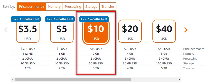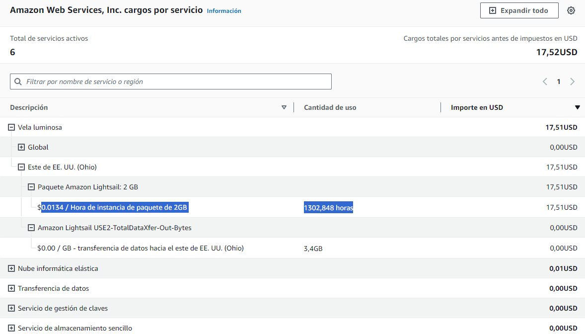 Precios de Amazon Lightsail : https://aws.amazon.com/es/lightsail/pricing/