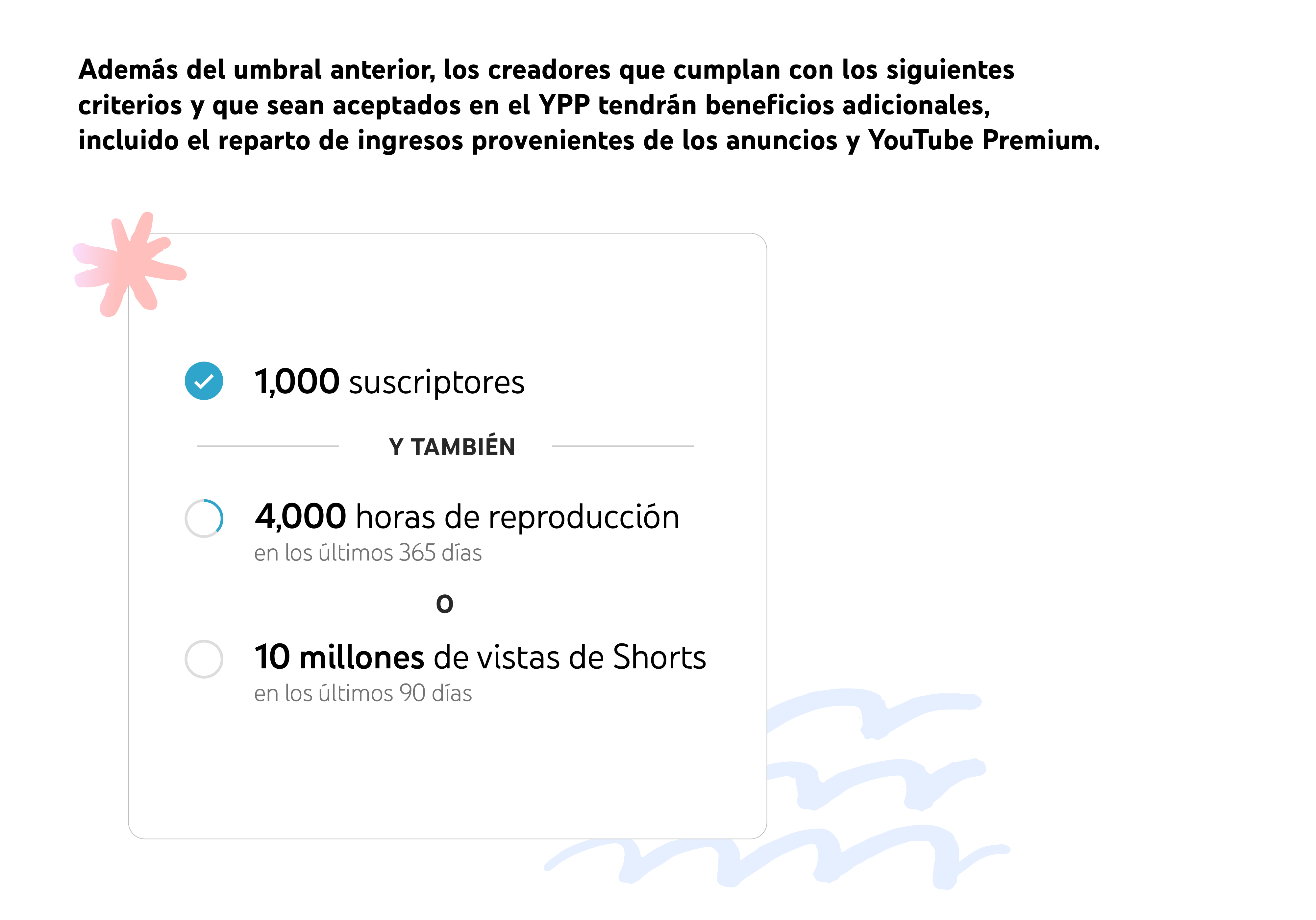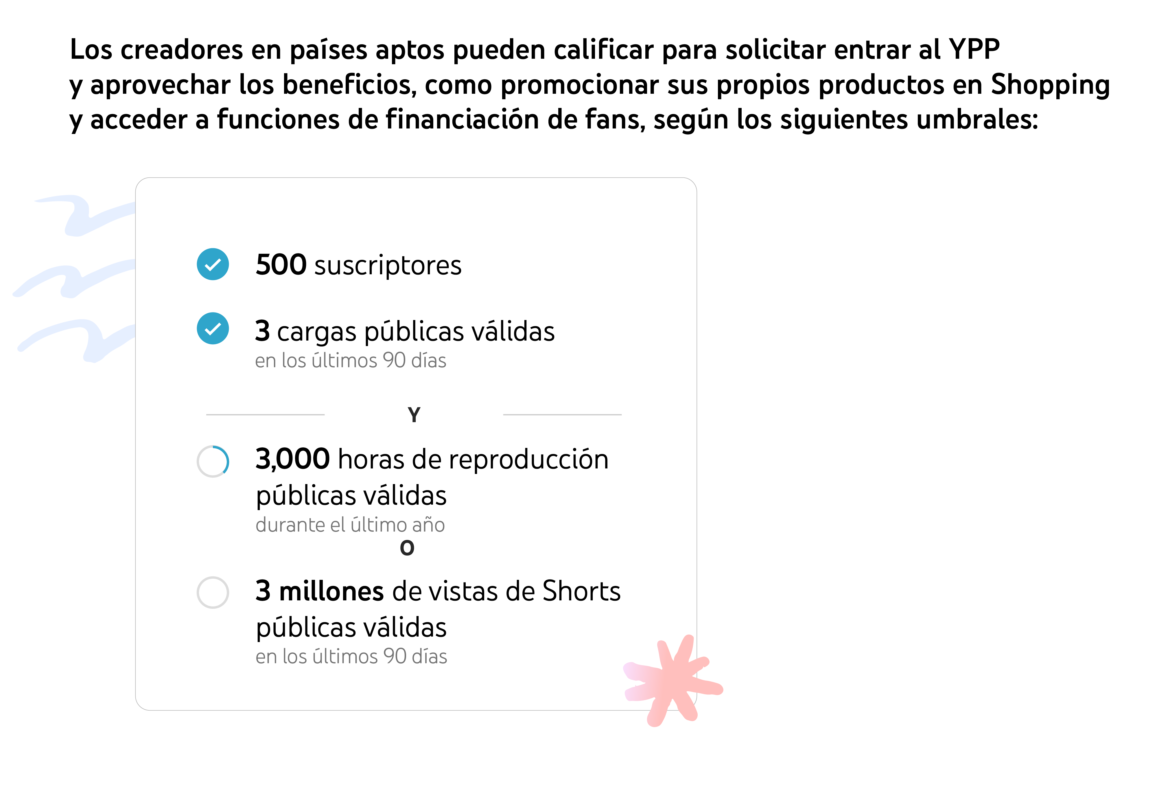 Los creadores que formen parte del Programa de socios de YouTube (YPP) y cumplan con los siguientes criterios de elegibilidad podrán obtener beneficios adicionales, como el reparto de ingresos publicitarios y de YouTube Premium: